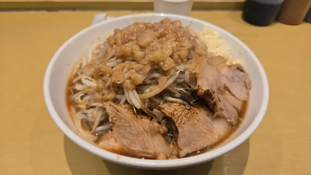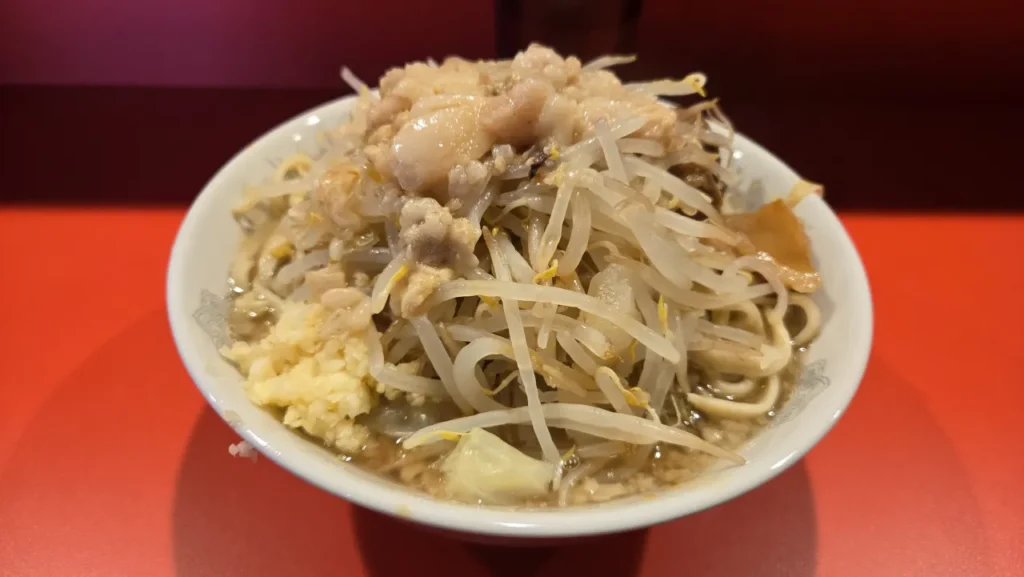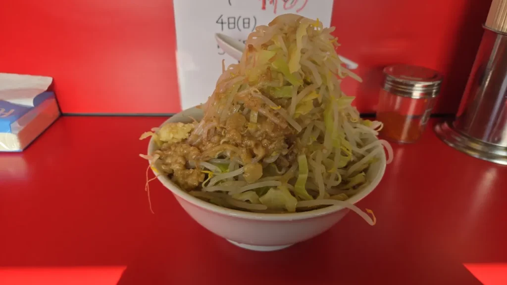 2024年4月7日訪問。ヤサイのストック切れで別皿提供のため、盛りは控えめに見える。