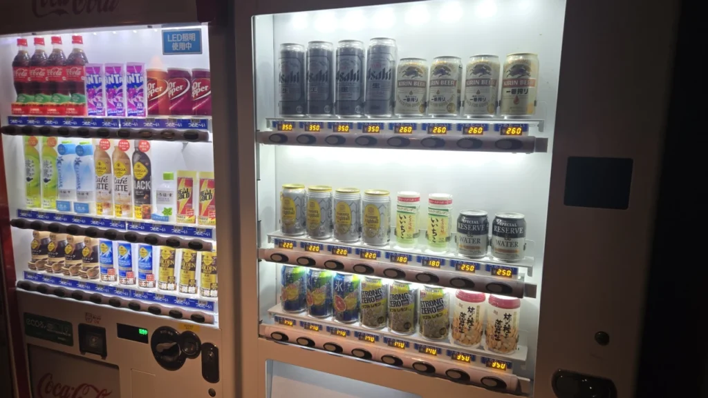 いつもどおり部屋のすぐそばに自販機がご用意されていた。酒が良心的な価格なんですよね。スキー場だと350mL缶で350円とかザラで、それに慣れてるとだいぶ安く感じる。